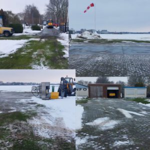Hoewel hoofdbaan en taxibaan nog niet sneeuwvrij en dus bruikbaar zijn voor zg. “fixed-wing”vliegtuigen (voor de vliegers: zie Notam!), is het met Johns inspanning gelukt om in ieder geval heliverkeer te kunnen faciliteren, zoals bijv. de vliegende hulpdiensten.